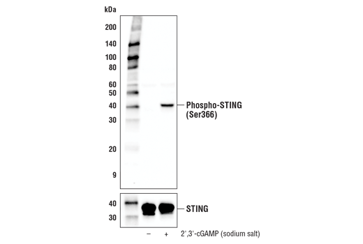 2’,3’-cGAMP (sodium salt) is supplied as a lyophilized powder. For a 5 mM stock, reconstitute 500 μg of powder in 139 μl of DMSO. Working concentrations and length of treatment can vary depending on the desired effect.