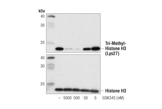 GSK343 is supplied as a lyophilized powder. For a 5 mM stock, reconstitute the 1 mg in 369.21 μl DMSO. Working concentrations and length of treatment can vary depending on the desired effect, but it is typically used at 5 nM-5 μM for 2-48 hr.