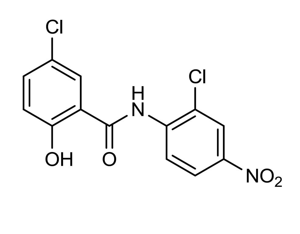 Niclosamide is a STAT3 inhibitor (IC50 = 0.25 μM) known to induce apoptosis and cell cycle arrest (1). This small molecule stimulates autophagy by reversibly inhibiting mammalian target of rapamycin complex 1 (mTORC1) signaling and inhibiting phosphorylation of ribosomal S6 kinases at certain concentrations (2). In clinical settings, Niclosamide has been used to treat parasitic-driven diseases in humans as an antihelminthic drug. Studies have shown Niclosamide to be an effective antiviral agent, inhibiting the replication of SARS-CoV (3).
