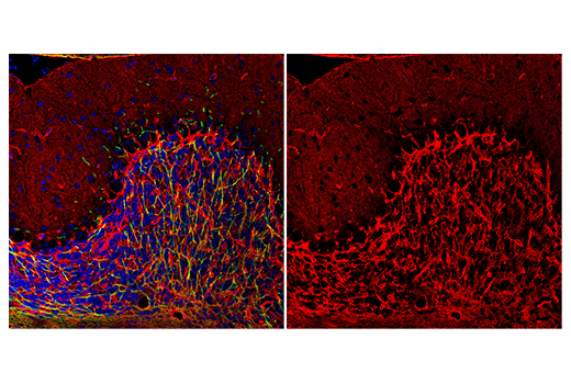 This Cell Signaling Technology antibody is conjugated to Alexa Fluor® 647 fluorescent dye and tested in-house for direct immunofluorescent analysis in mouse tissues. This antibody is expected to exhibit the same species cross-reactivity as the unconjugated AQP4 (D1F8E) XP® Rabbit mAb #59678.