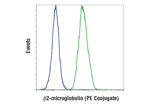 This Cell Signaling Technology antibody is conjugated to phycoerythrin (PE) and tested in-house for direct flow cytometry analysis in human cells. The antibody is expected to exhibit the same species cross-reactivity as the unconjugated β2-microglobulin (D8P1H) Rabbit mAb #12851.