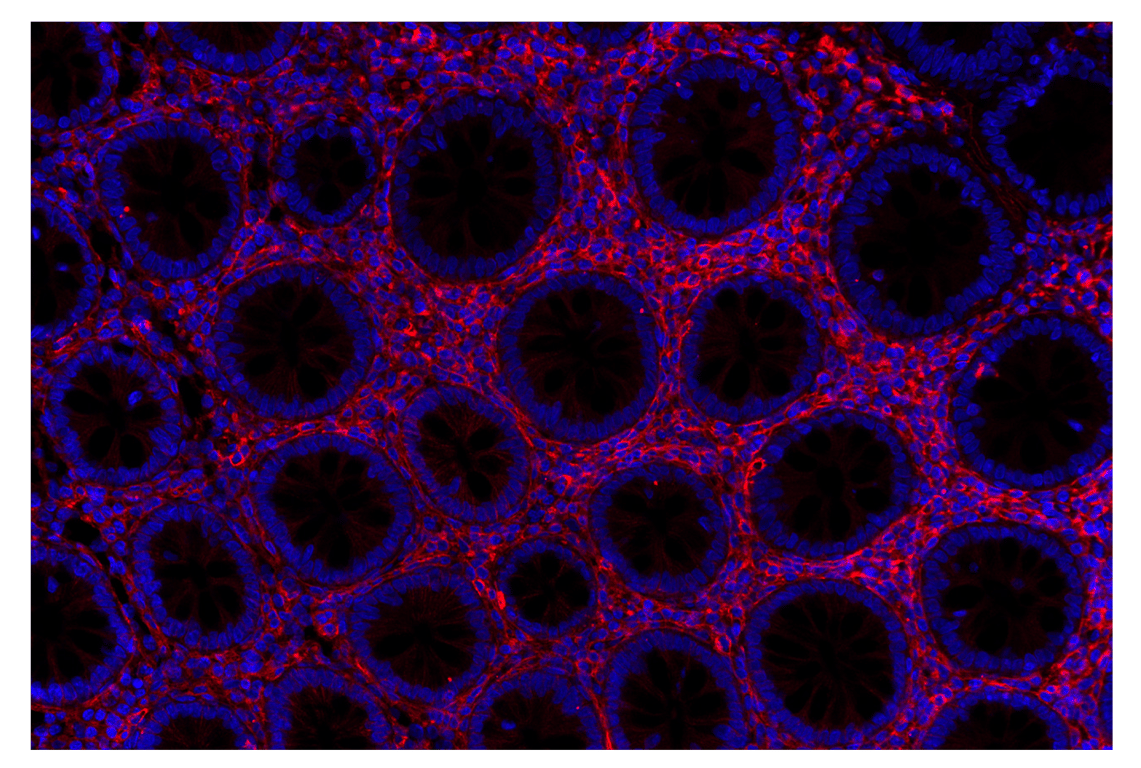 CD44 (E7K2Y) XP® Rabbit mAb (Alexa Fluor® 555 Conjugate) recognizes endogenous levels of total CD44 protein.