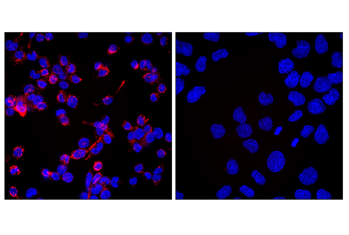 CD68 (D4B9C) Rabbit Monoclonal Antibody (Alexa Fluor® 594 Conjugate) recognizes endogenous levels of total CD68 protein.