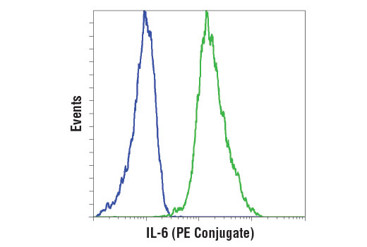 This Cell Signaling Technology antibody is conjugated to phycoerythrin (PE) and tested in-house for direct flow cytometry analysis in mouse cells. The antibody is expected to exhibit the same species cross-reactivity as the unconjugated IL-6 (D5W4V) XP® Rabbit mAb #12912.