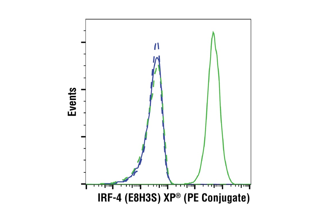 This Cell Signaling Technology antibody is conjugated to phycoerythrin (PE) and tested in-house for direct flow cytometric analysis in human cells. This antibody is expected to exhibit the same species cross-reactivity as the unconjugated IRF-4 (E8H3S) XP® Rabbit mAb #62834.