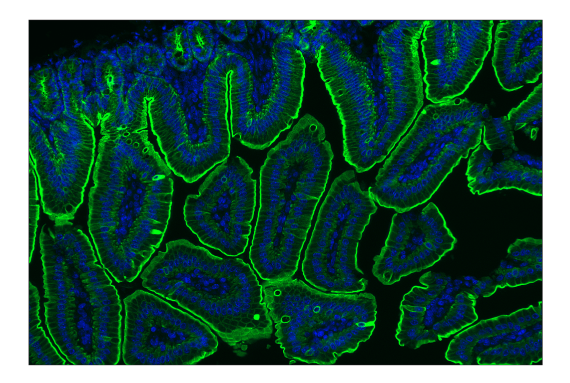 Pan-Keratin (Type I) (E6S1S) Rabbit mAb (Alexa Fluor® 488 Conjugate) recognizes endogenous levels of total type I keratin protein. This antibody conjugate was validated to detect overexpressed keratin 10, 17, and 18. By homology, it is also predicted to detect keratin 13, 14, 15, 16, and 19. This antibody conjugate does not detect type II keratins including keratin 1, 5, 6a, 7, and 8. Non-specific staining was observed in Leydig cells of the testis by immunohistochemistry.