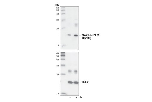 Phospho-Histone H2A.X (Ser139) (20E3) Rabbit Monoclonal Antibody (Biotinylated) detects endogenous levels of H2A.X only when phosphorylated at Ser139.