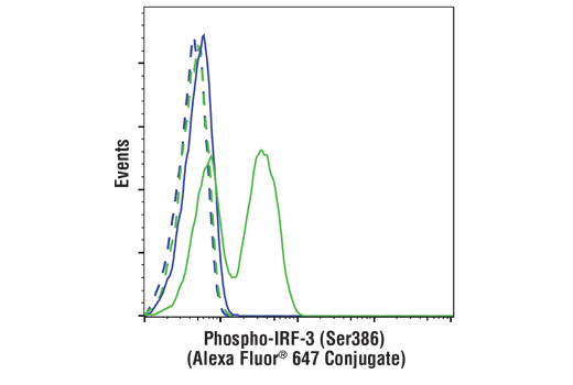 Phospho-IRF-3 (Ser386) (E7J8G) Rabbit Monoclonal Antibody (Alexa Fluor® 647 Conjugate) recognizes endogenous levels of IRF-3 protein only when phosphorylated at Ser386.