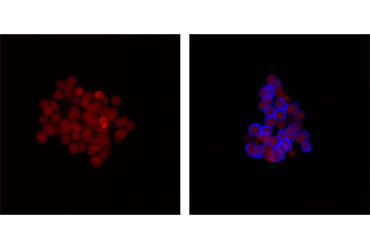This Cell Signaling Technology antibody is conjugated to Alexa Fluor® 647 fluorescent dye and tested in-house for direct flow cytometry and immunofluorescent analysis in human cells. The antibody is expected to exhibit the same species cross-reactivity as the unconjugated Phospho-Syk (Tyr525/526) (C87C1) Rabbit mAb #2710.