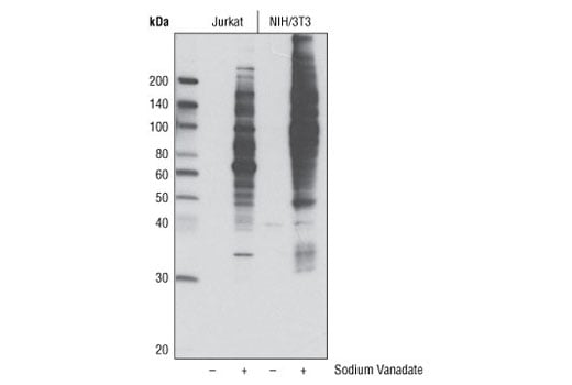 Tyrosine phosphorylation plays a key role in cellular signaling (1). Research studies have shown that in cancer, unregulated tyrosine kinase activity can drive malignancy and tumor formation by generating inappropriate proliferation and survival signals (2). Antibodies specific for phospho-tyrosine (3,4) have been invaluable reagents in these studies. The phospho-tyrosine monoclonal antibodies developed by Cell Signaling Technology are exceptionally sensitive tools for studying tyrosine phosphorylation and monitoring tyrosine kinase activity in high throughput drug discovery.