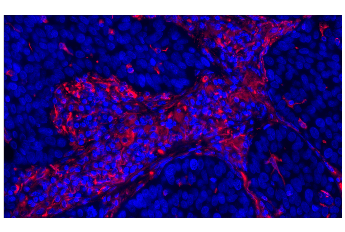 This Cell Signaling Technology antibody is conjugated to Alexa Fluor® 555 fluorescent dye. The antibody is expected to exhibit the same species cross-reactivity as the unconjugated Vimentin (D21H3) XP® Rabbit mAb #5741.