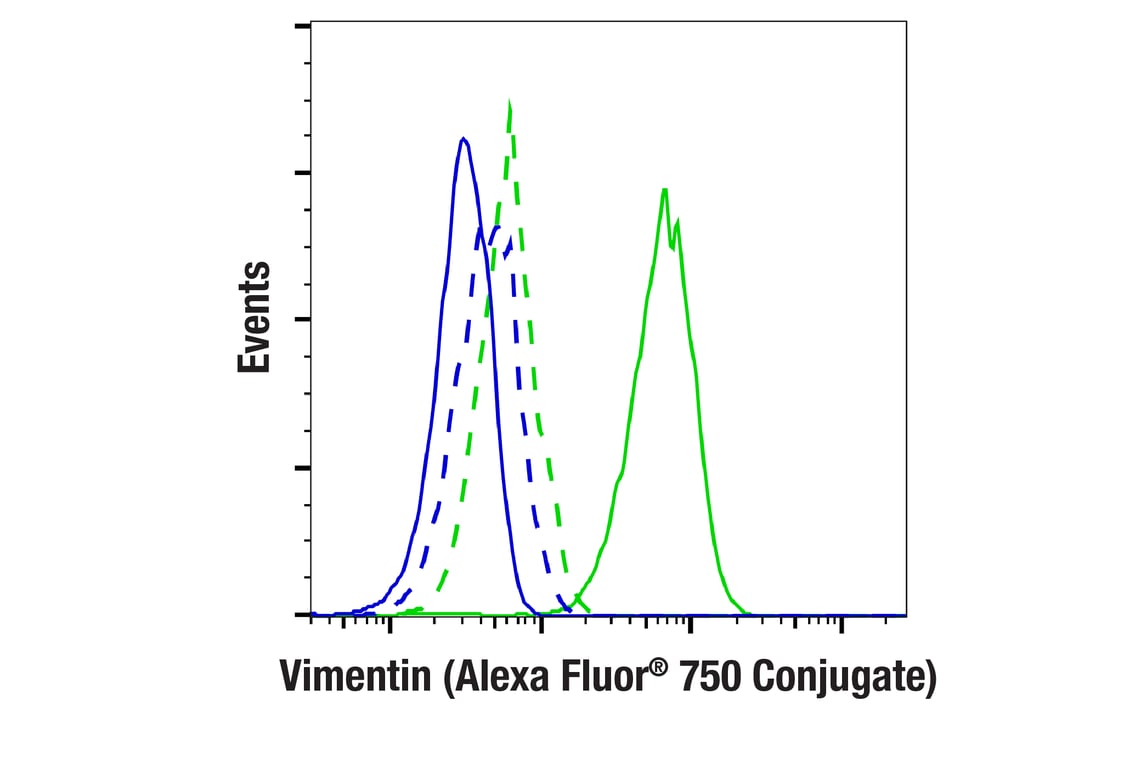 This Cell Signaling Technology antibody is conjugated to Alexa Fluor® 750 fluorescent dye under optimal conditions and tested in-house for direct flow cytometric analysis in human cells. This antibody conjugate is expected to exhibit the same species cross-reactivity as the unconjugated Vimentin (D21H3) XP® Rabbit mAb #5741.