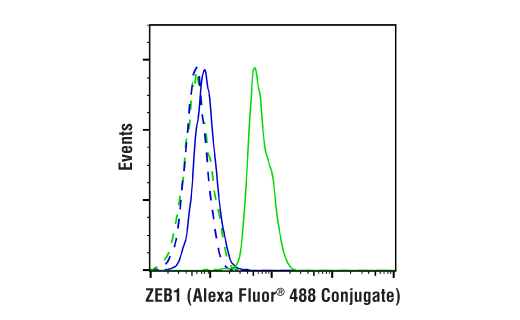 ZEB1 (E2G6Y) XP® Rabbit mAb (Alexa Fluor® 488 Conjugate) recognizes endogenous levels of total ZEB1 protein.