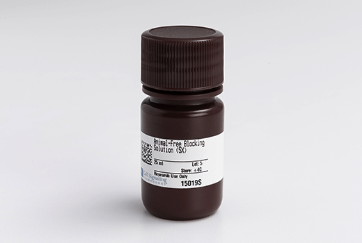 Animal-Free Blocking Solution (5X) is designed for use as a blocking reagent in chromogenic immunohistochemical assays (IHC) and western blotting. This plant-based product contains no animal-derived proteins and can be used to decrease background in place of normal goat serum, BSA, or non-fat dry milk.