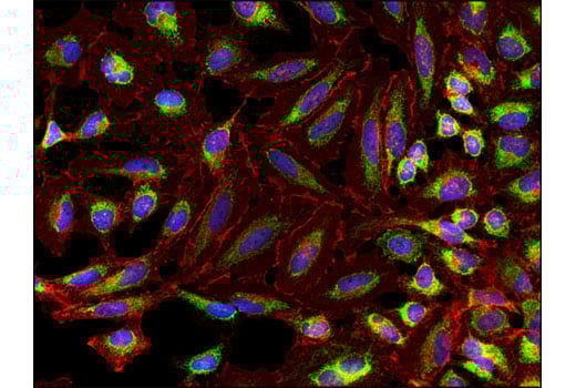 Directions for Use: DAPI is supplied as a lyophilized powder. For a 20 mg/ml stock, reconstitute the 1 mg in 50 µl deionized water or dimethylformamide. Please follow CST’s recommended IF and Flow protocols. For both applications, following secondary detection: