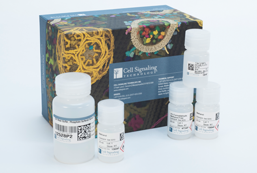 All components in this kit are stable for at least 12 months when stored at the recommended temperature and left unused. Formaldehyde fixative should be used within one month after opening. Upon receipt, #13616 should be stored at 4°C. Remaining components should be stored at room temperature.