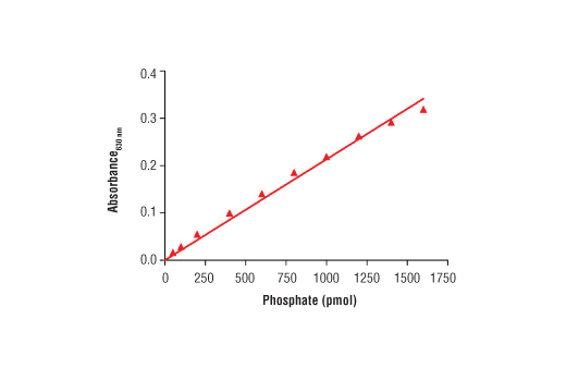 The Malachite Green Phosphate Detection Kit is designed for the in vitro measurement of phosphatase activity. Protein phosphatase enzymatic activity results in the release into solution of free inorganic phosphate from protein-phosphatase substrates. This free inorganic phosphate then forms a green molybdophosphoric acid complex. Formation of this complex is monitored and quantified by measuring the absorbance at 630 nm. This absorbance is proportional to free-inorganic phosphate in solution and correlates with the activity of phosphatase (1,2).