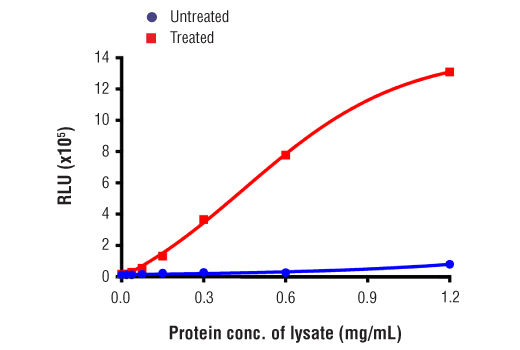 The rapid protocol (RP) PathScan® RP Phospho-RIP (Ser166) Chemiluminescent Sandwich ELISA Kit is a solid phase sandwich enzyme-linked immunosorbent assay (ELISA) that detects endogenous levels of RIP protein phosphorylated at Ser166 in a reduced assay time of 1.5 hours. This chemiluminescent ELISA, which is offered in low volume microplates, shows increased signal and sensitivity while using a smaller sample size. Incubation of cell lysates and detection antibody on the coated microwell plate forms a sandwich with phospho-RIP (Ser166) protein in a single step. The plate is then extensively washed and chemiluminescent reagent is added for signal development. The magnitude of light emission, measured in relative light units (RLU), is proportional to the quantity of RIP protein phosphorylated at Ser166. Learn more about all of your ELISA kit options here.