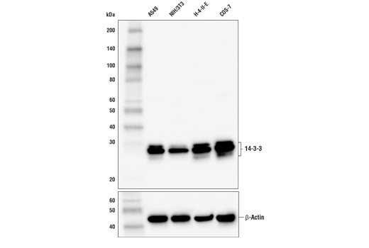 14-3-3 (pan) (E9S9M) Rabbit mAb recognizes endogenous levels of total 14-3-3 protein. This antibody detects all known isoforms of mammalian 14-3-3 proteins (β/α, γ, ε, η, ζ/δ, θ/τ and σ).
