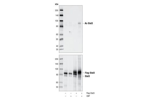 In addition to phosphorylation, Stat3 can be modified by acetylation. Stat3 is acetylated at Lys685 by p300/CREB-binding protein (CBP) which can stimulate DNA binding and transactivation activity (11,12).