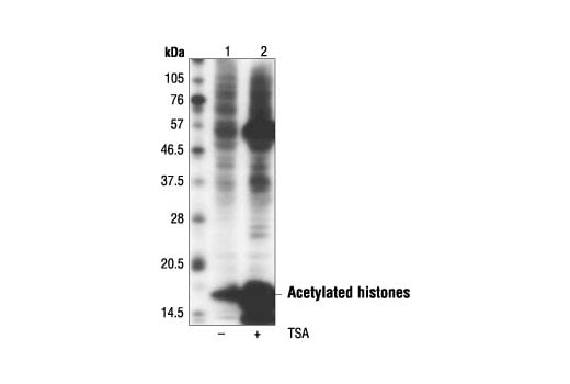 Acetylated-Lysine (Ac-K-103) Mouse Monoclonal Antibody detects proteins only when posttranslationally modified by acetylation on the epsilon-amine groups of lysine residues. Detection of acetylated lysine by this antibody is largely independent of surrounding amino acid sequence. This antibody has been shown to recognize acetylated proteins including histones, p53, CBP, PCAF and chemically acetylated BSA.