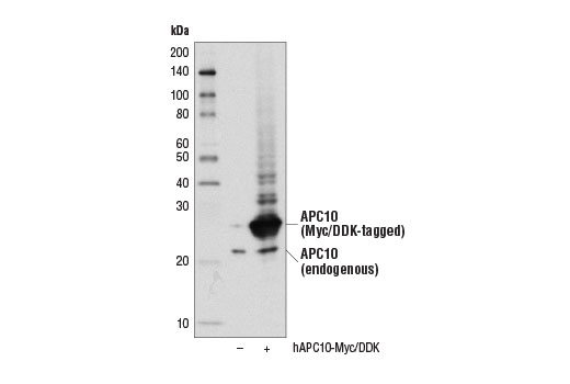 Anaphase-promoting complex subunit 10 (APC10, DOC1) is a highly conserved, core component of the anaphase promoting complex/cyclosome (10,11). Research studies indicate that APC10 participates in substrate recognition by the APC/C (3,12,13).