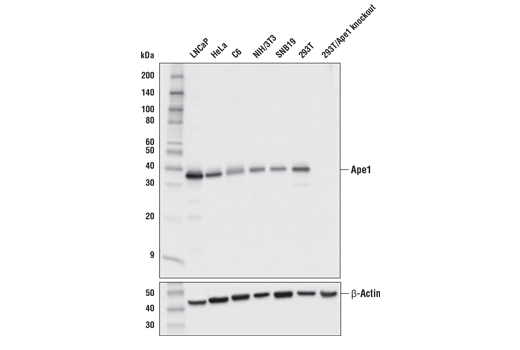 Ape1 (E5Y2C) Rabbit mAb recognizes endogenous levels of total Ape1 protein.