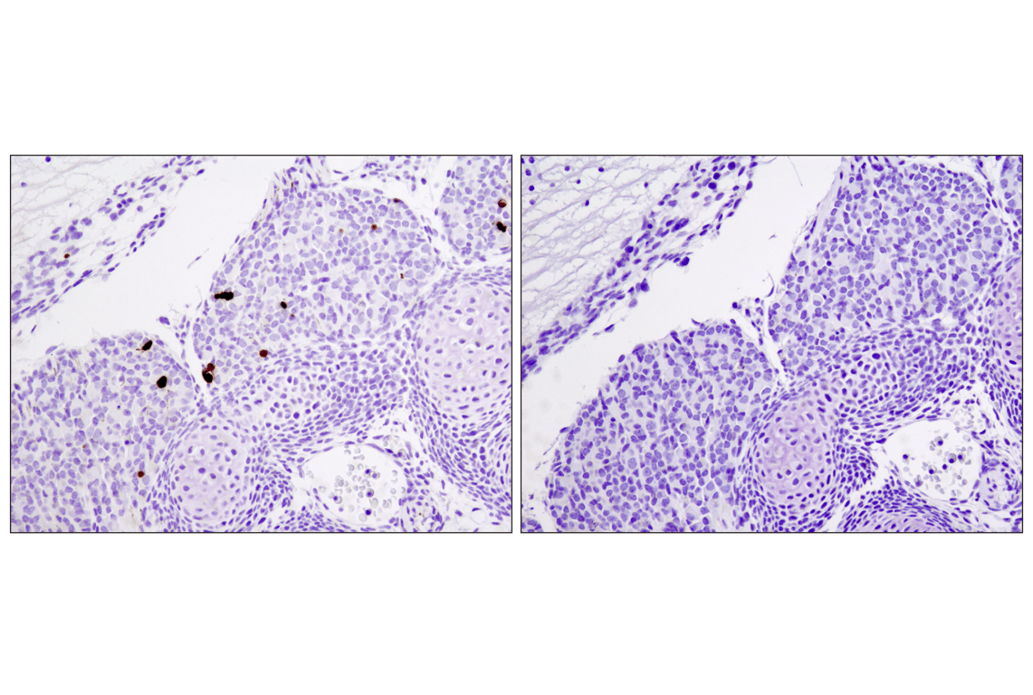 SignalStain® Apoptosis (Cleaved Caspase-3) IHC Detection Kit allows the detection of activated caspase-3 in formalin-fixed paraffin-embedded human and mouse tissue samples. Cleaved Caspase-3 (Asp175) (D3E9) Rabbit mAb is detected by the polymer based, HRP-conjugated SignalStain® Boost IHC Detection Reagent in combination with SignalStain® DAB Diluent and Chromogen Concentrate. Also included is a concentration-matched rabbit monoclonal IgG control to verify the specificity of staining.