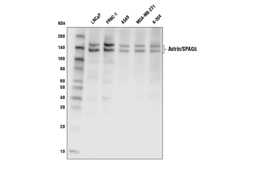 Astrin; Deepest; hMAP126; MAP126; mitotic spindle associated protein p126; mitotic spindle coiled-coil related protein; Mitotic spindle-associated protein p126; SPAG5; sperm associated antigen 5; Sperm-associated antigen 5