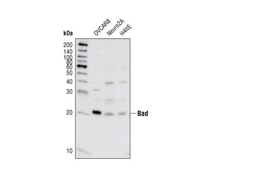 Bad (11E3) Rabbit mAb (BSA and Azide Free) detects endogenous levels of total Bad protein.