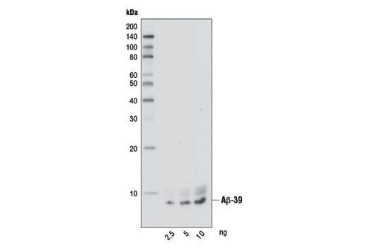 Amyloid β (Aβ) precursor protein (APP) is a 100-140 kDa transmembrane glycoprotein that exists as several isoforms (1). The amino acid sequence of APP contains an amyloid domain, which can be processed and released by two-step proteolytic cleavage (1). The extracellular deposition and accumulation of the released Aβ fragments form the main components of amyloid plaques in Alzheimer's disease (1). Several fragments corresponding to progressive APP processing at alternative cleavage sites have been identified (2). These include Aβ (1-37), Aβ (1-39), Aβ (1-40), and Aβ (1-42) (2). These fragments can also be N-terminally modified to generate pyroglutamate-3 Aβ (pE3-peptide) (3). Fragment-specific and pan-Aβ antibodies are used to detect and examine relative levels of individual Aβ fragments.