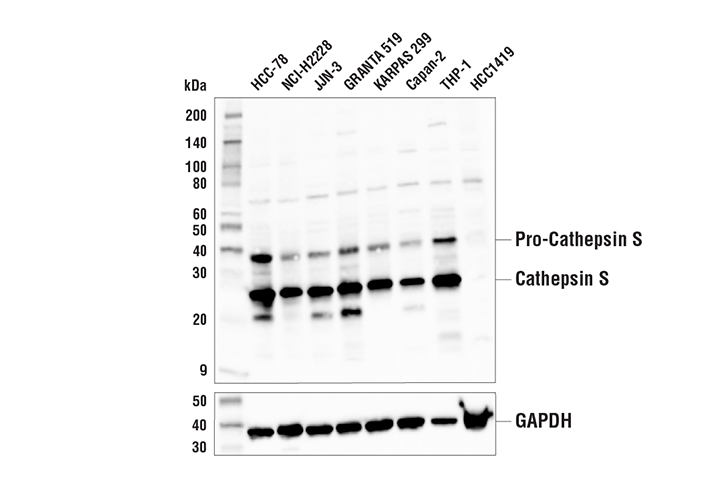 Cathepsin S Antibody recognizes endogenous levels of total cathepsin S protein. This antibody detects the full-length pro-protein (37 kDa), and proteolytically activated cathepsin S (25 kDa). In some cell extracts, the antibody weakly detects a 70 kDa protein of unknown identity.