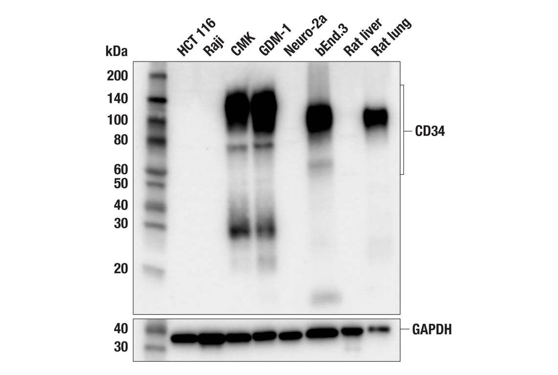 CD34 (F3Q8F) Rabbit mAb recognizes endogenous levels of total CD34 protein.