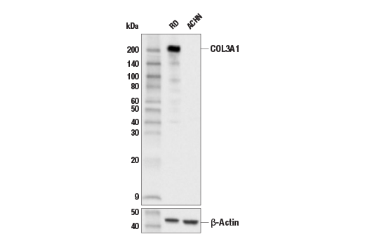 COL3A1 (E8D7R) XP® Rabbit mAb (BSA and Azide Free) recognizes endogenous levels of total COL3A1 protein.