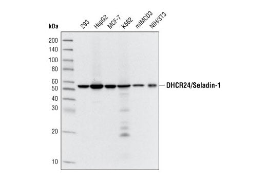 24-dehydrocholesterol reductase; 3 beta-hydroxysterol delta 24-reductase; 3-beta-hydroxysterol delta-24-reductase; DCE; Delta(24)-sterol reductase; desmosterol-to-cholesterol enzyme; DHC24; DHCR24; Diminuto; Diminuto/dwarf1 homolog; KIAA0018; Nbla03646; seladin 1; Seladin-1; SELADIN1; selective AD indicator 1