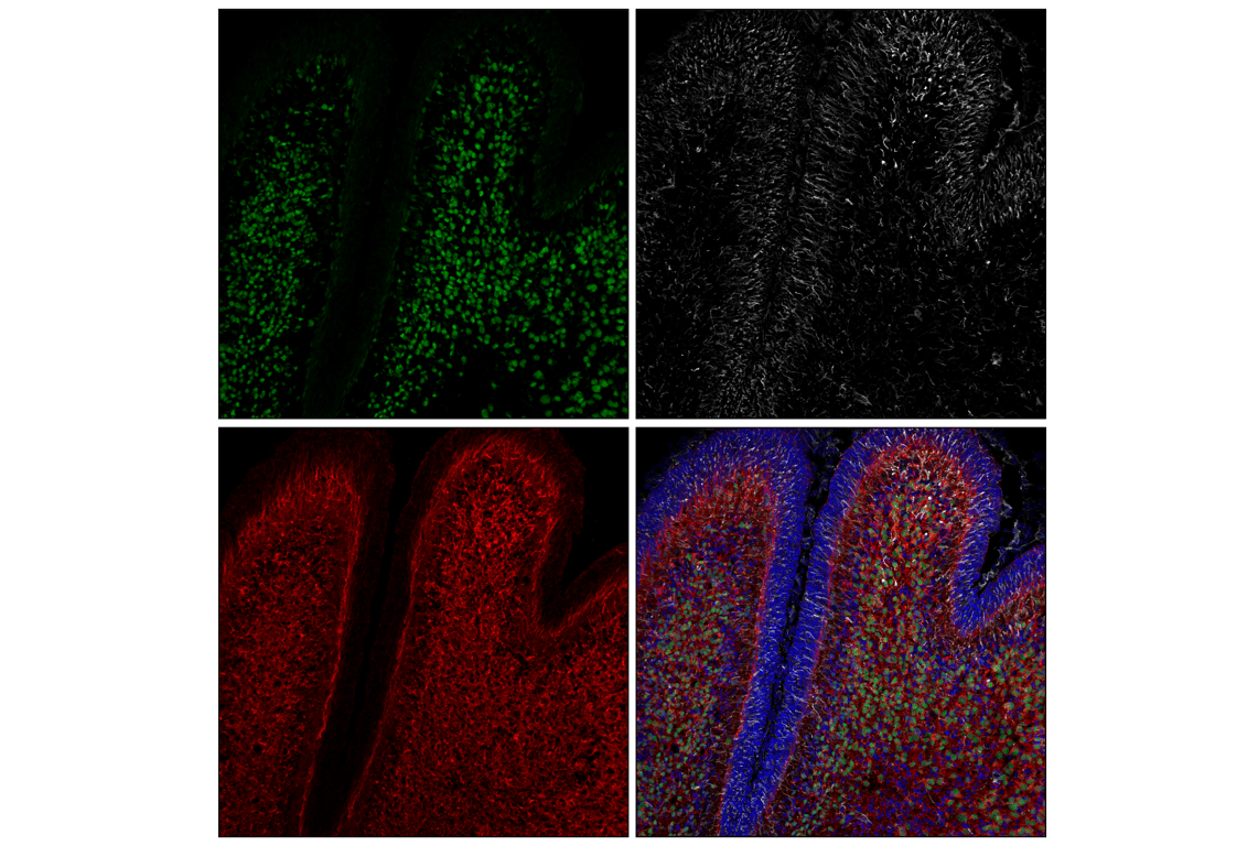 This recombinant chimeric antibody is engineered from Doublecortin (F6K9E) Rabbit mAb #56130 according to animal-free protocols. This chimeric antibody retains its antigen-binding Fab regions from the original rabbit monoclonal antibody, but contains a horse-derived Fc domain. When multiplexing, Fc-directed rabbit secondaries are required to detect rabbit-host primary antibodies.