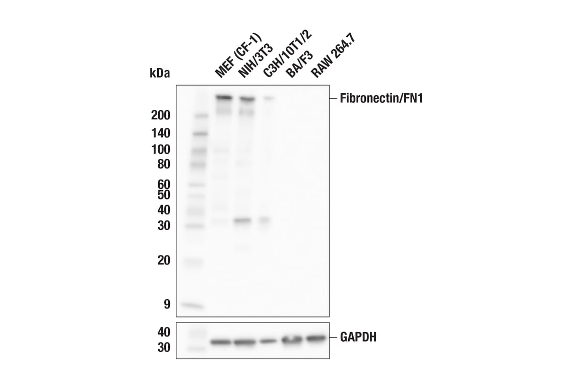 Fibronectin/FN1 (F5L7Y) Rabbit Monoclonal Antibody recognizes endogenous levels of total fibronectin/FN1 protein.