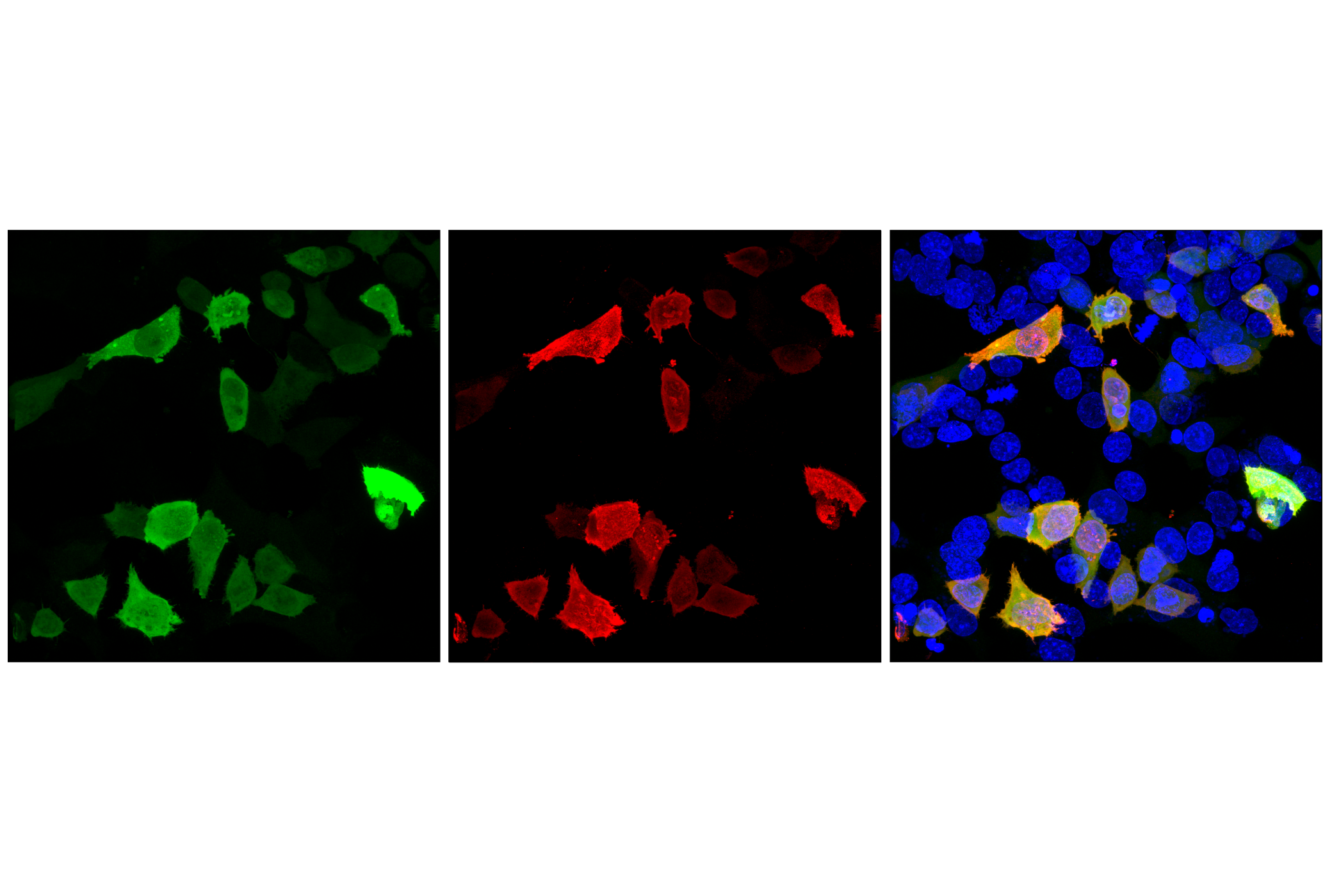 This recombinant chimeric antibody is engineered from Firefly Luciferase (E9W9V) Rabbit mAb #25039 according to animal-free protocols. The chimeric antibody retains its antigen-binding Fab regions from the original rabbit monoclonal antibody but contains a feline-derived Fc domain. When multiplexing, Fc-directed rabbit secondaries are required to detect rabbit-host primary antibodies.
