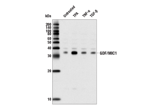 GDF-15; GDF15; growth differentiation factor 15; Growth/differentiation factor 15; Macrophage inhibitory cytokine 1; MIC-1; MIC1; NAG-1; non-steroidal anti-inflammatory drug-activated gene-1; NRG-1; NSAID (nonsteroidal anti-inflammatory drug)-activated protein 1; NSAID-activated gene 1 protein; NSAID-regulated gene 1 protein; PDF; PLAB; Placental bone morphogenetic protein; Placental TGF-beta; Prostate differentiation factor; PTGF-beta; PTGFB