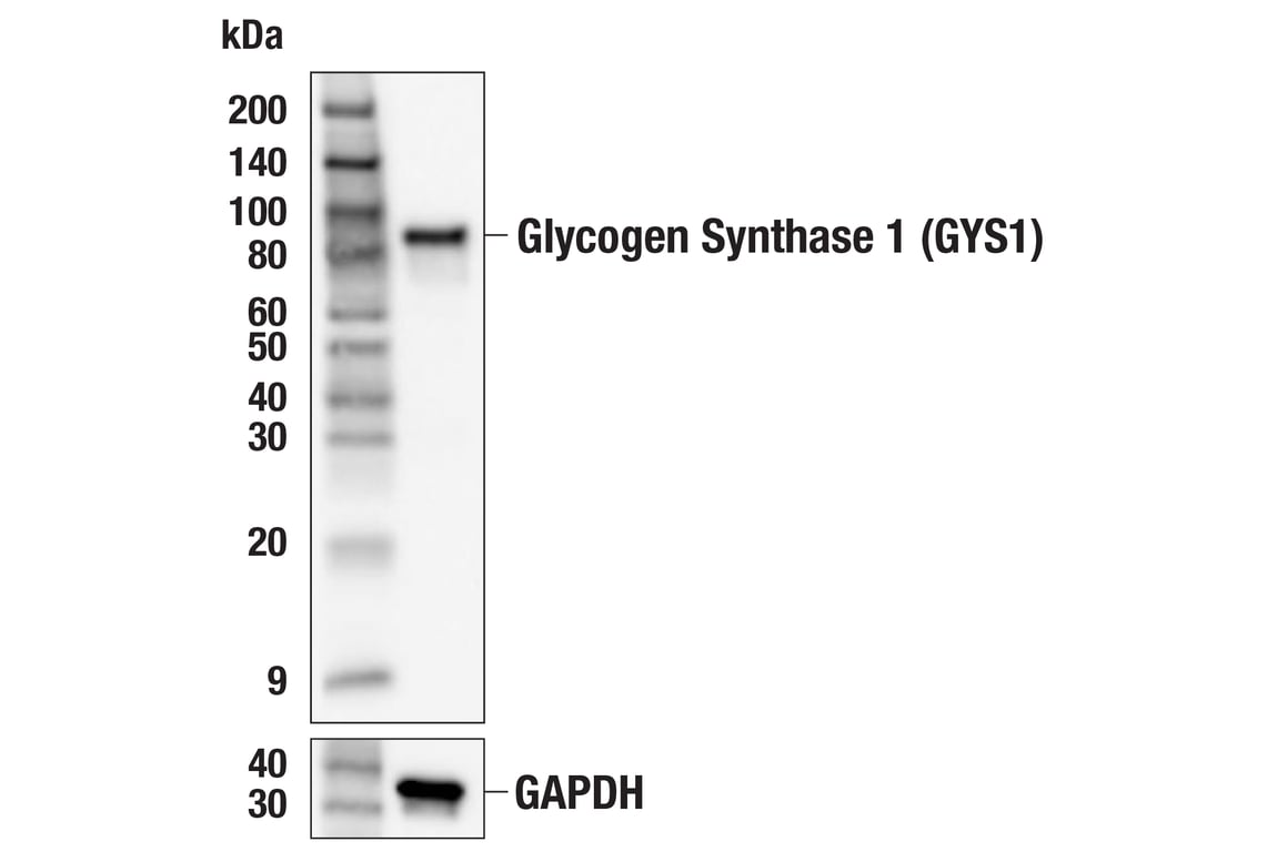 Glycogen Synthase 1 (GYS1) (F4L8X) Rabbit Monoclonal Antibody recognizes endogenous levels of total GYS1 protein. This antibody does not cross-react with GYS2 protein.