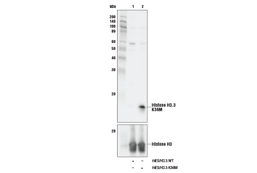 The Histone H3 Lysine Mutant-Specific Antibody Sampler Kit provides an economical means of detecting Lys (K) to Meth (M) cancer driver mutations in histone H3. The kit includes enough antibodies to perform two western blot experiments with each primary antibody.