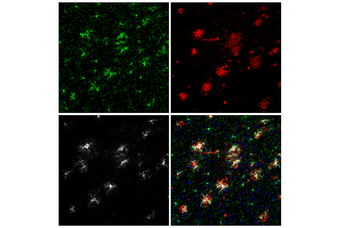 This recombinant chimeric antibody is engineered from Iba1/AIF-1 (E4O4W) XP® Rabbit mAb #17198 according to animal-free protocols. The chimeric antibody retains its antigen-binding Fab regions from the original rabbit monoclonal antibody but contains a mouse-derived Fc domain. When multiplexing, Fc-directed rabbit secondaries are required to detect rabbit-host primary antibodies.