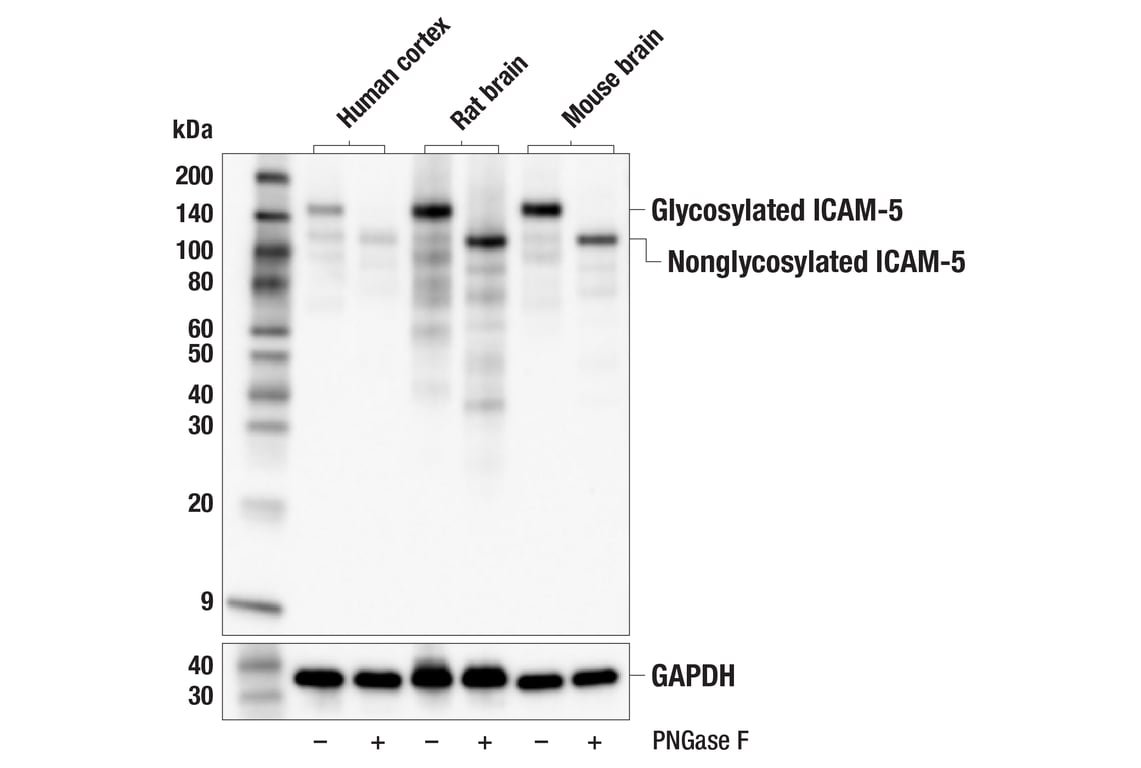 ICAM-5 (F6E2B) Rabbit Monoclonal Antibody recognizes endogenous levels of total ICAM-5 and sICAM-5 protein. This antibody detects a 70 kDa protein of unknown identity in some cell lines.