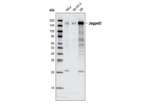 Jagged2 (C83A8) Rabbit Monoclonal Antibody detects endogenous levels of total Jagged2 protein. This antibody does not cross-react with Jagged1.