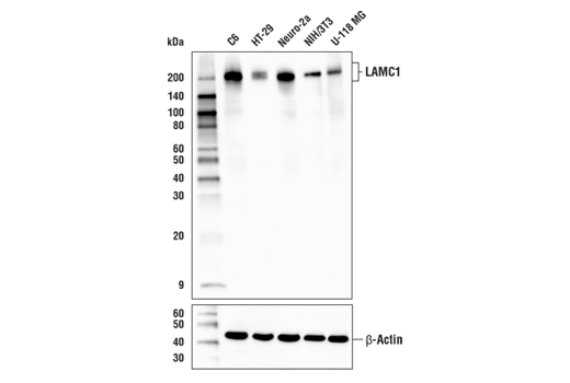 LAMC1 (E9V4G) Rabbit mAb recognizes endogenous levels of total LAMC1 protein.