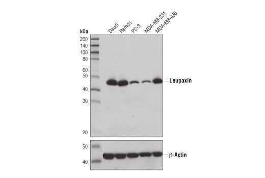 Leupaxin (D4I3B) Rabbit Monoclonal Antibody recognizes endogenous levels of total leupaxin protein.