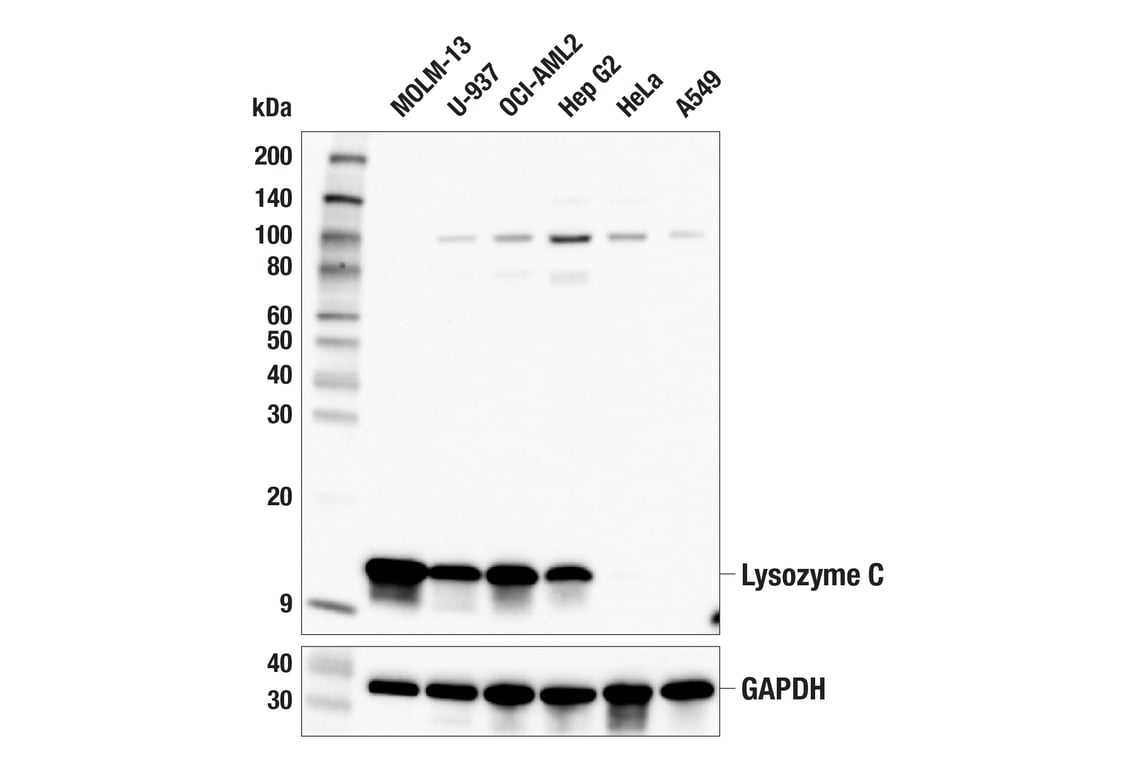 Lysozyme C (E9W6E) Rabbit Monoclonal Antibody recognizes endogenous levels of total Lysozyme C protein.