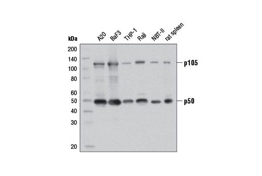 DNA-binding factor KBF1; EBP-1; NF kappaB1; NF-k; NF-kappa-B1 p84/NF-kappa-B1 p98; NF-kappaB; NF-kappaB p50; NF-kappaB1; NF-KB1; NFkB-p105; Nfkb1; nuclear factor kappaB p50; Nuclear factor NF-kappa-B p105 subunit; Nuclear factor NF-kappa-B p50 subunit; nuclear factor of kappa light chain gene enhancer in B-cells 1, p105; nuclear factor of kappa light polypeptide gene enhancer in B cells 1, p105; Nuclear factor of kappa light polypeptide gene enhancer in B-cells 1; nuclear factor of kappa light polypeptide gene enhancer in B-cells 1, p105; nuclear factor-kappaB p50; OTTMUSP00000018024; p105; p50; p50 subunit of NF kappaB; p50 subunit of NF-kappaB; p50/p1; p50/p105
