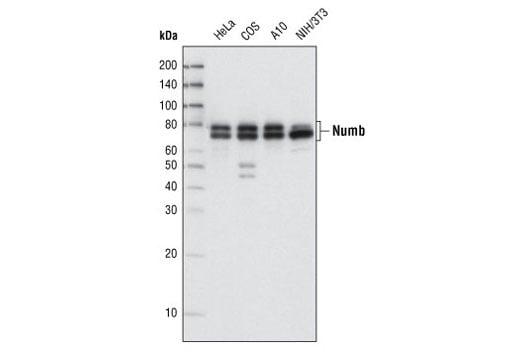 Numb (C29G11) Rabbit Monoclonal Antibody detects endogenous levels of total Numb protein.