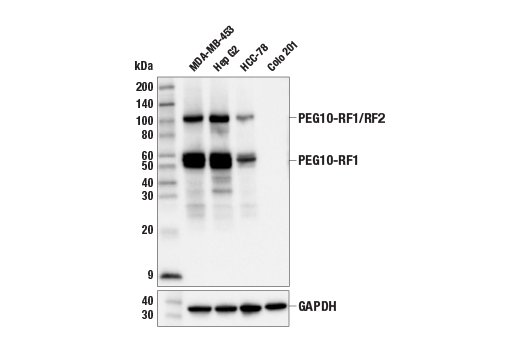 EDR; embryonal carcinoma differentiation regulated; Embryonal carcinoma differentiation-regulated protein; HB-1; KIAA1051; mammalian retrotransposon-derived 2; Mammalian retrotransposon-derived protein 2; MAR2; MART2; MEF3 like 1; MEF3-like protein 1; MEF3L; MEF3L1; Myelin expression factor 3-like protein 1; paternally expressed 10; Paternally expressed gene 10 protein; PEG10; retrotransposon gag domain containing 3; Retrotransposon gag domain-containing protein 3; retrotransposon Gag like 2; Retrotransposon-derived gag-like polyprotein; Retrotransposon-derived protein PEG10; RGAG3; RTL2; SIRH1; Sushi-Ichi retrotransposon homolog 1; Ty3/Gypsy-like protein